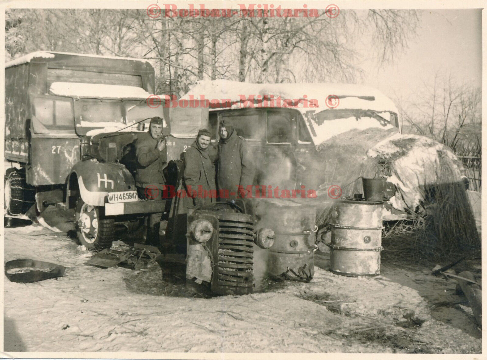 Russland Wehrmacht LKW Winter werden betankt bei 48 Grad Kälte Kennung
