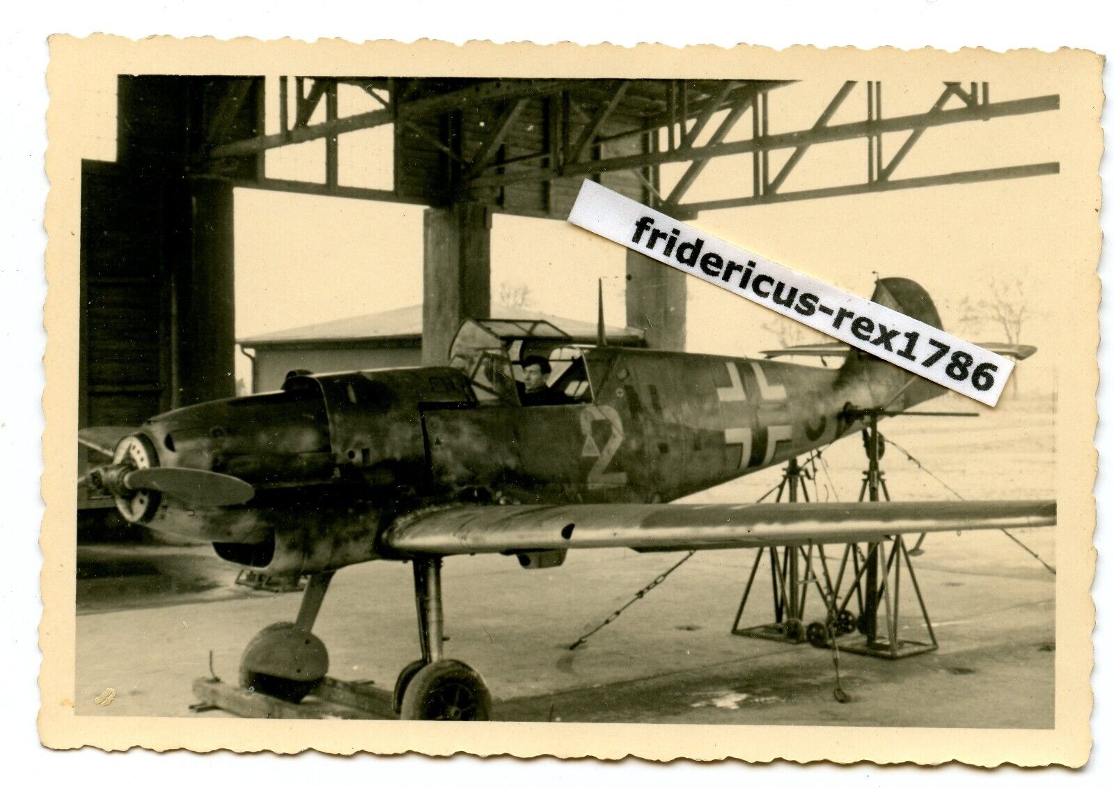 A10 Foto LW Messerschmitt Bf 109 JG weiße 2 Kennung NI .... im Hangar camo
