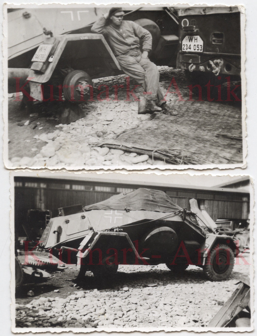 Fotos Wehrmacht Panzer Aufkl. Spähwagen 222 crash Soldat werksta