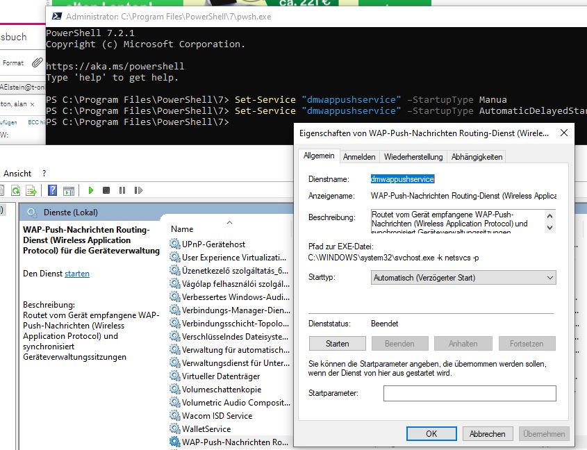 Set-Service dmwappushservice Automatic (Verzoegerter Start)