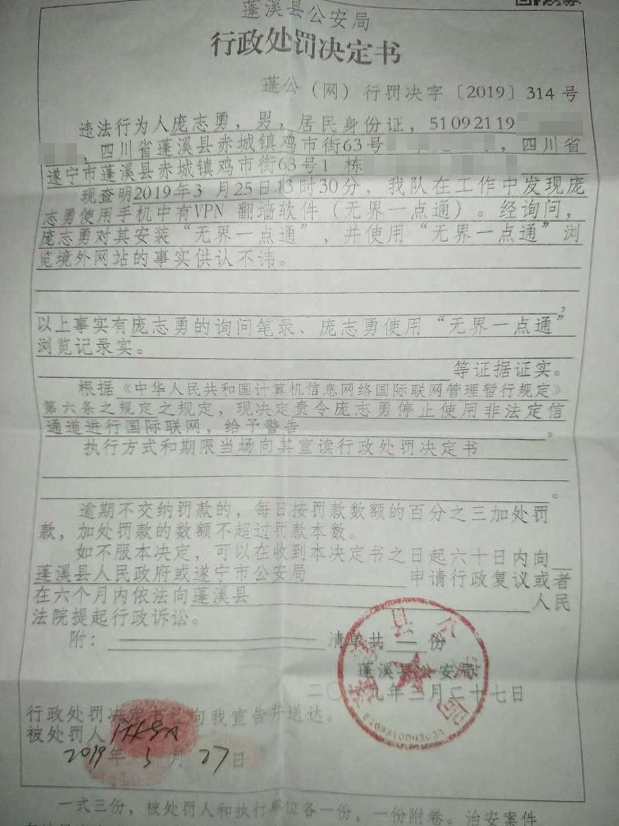 行政处罚决定书-使用VPN