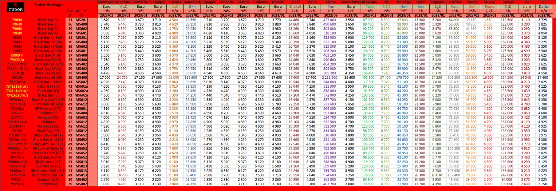 Tudor prices 2023 March