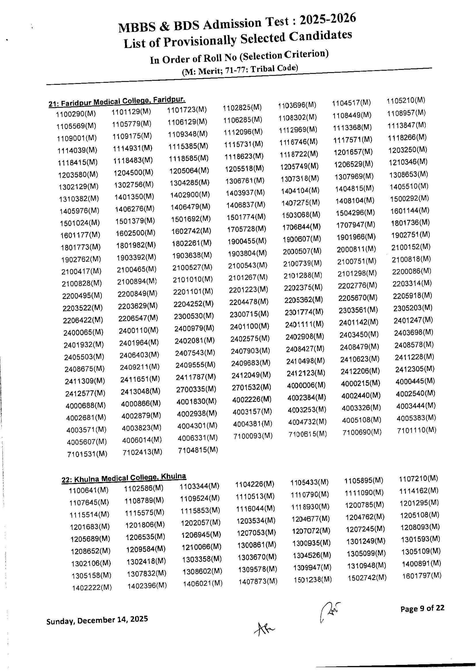 Medical MBBS Admission Test Result 2025 2026 Session PDF 11