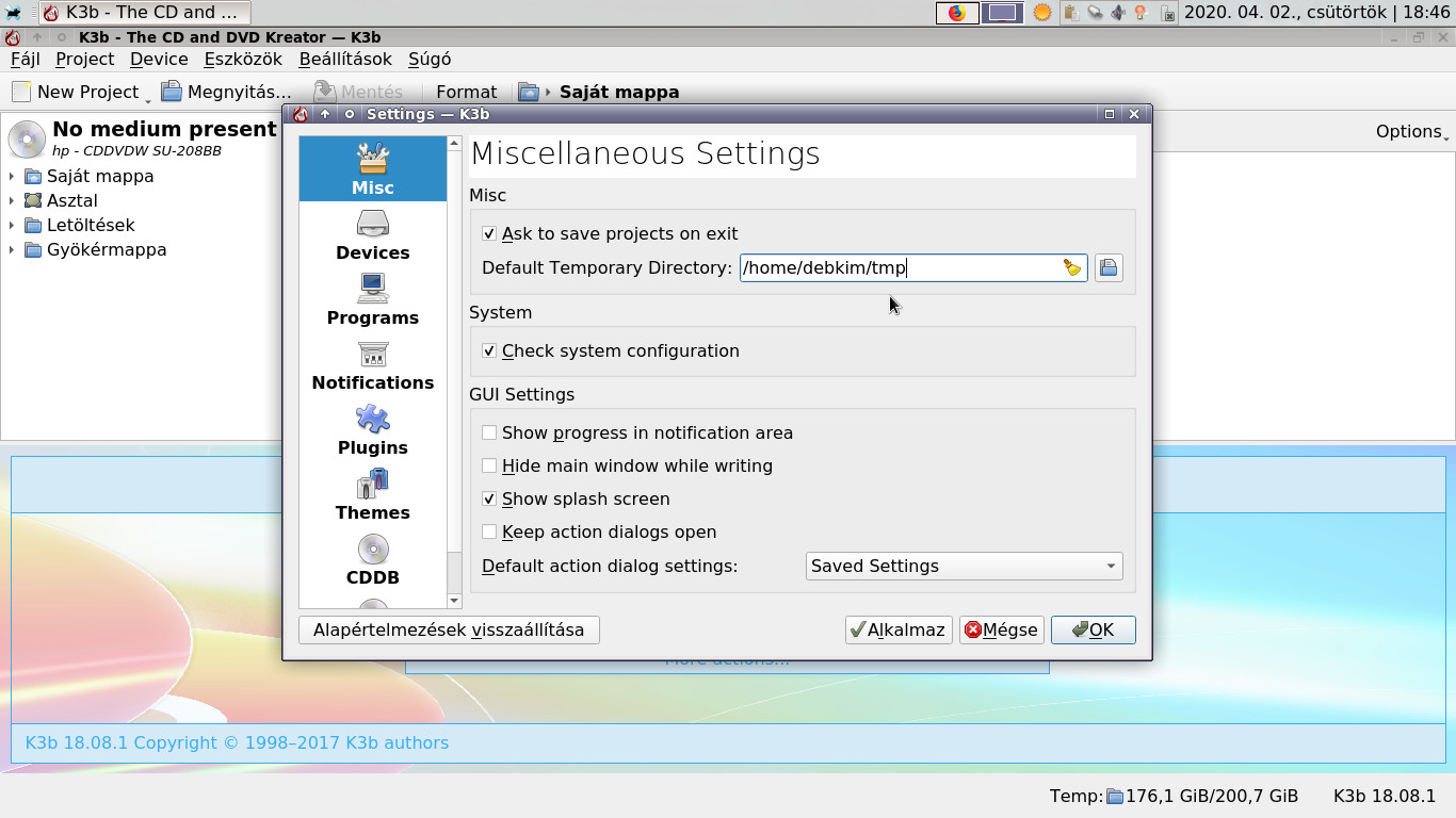 K3b - Misc, Default Temporary Directory (tmp)