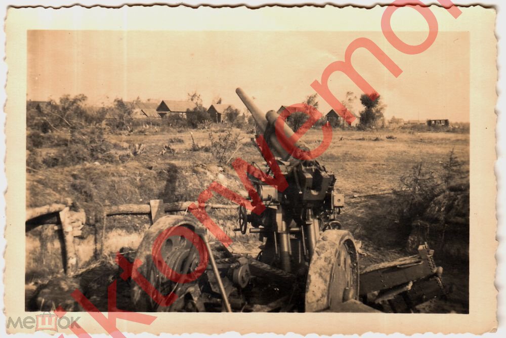 Трофейная советская пушка на позиции Орудие Зенитка Деревня
