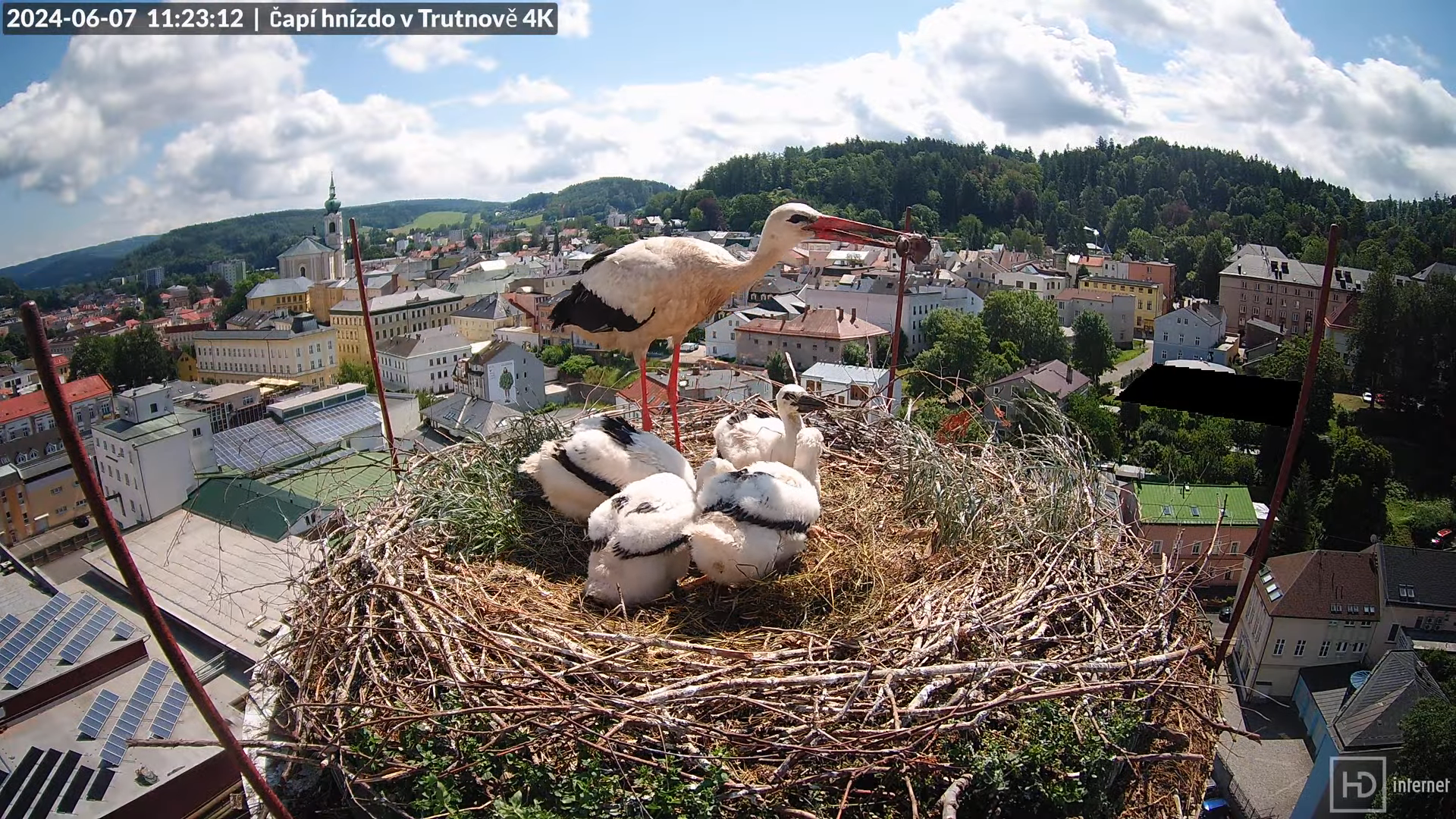 Tiešraidē no stārķa ligzdas uz alus darītavas skursteņa Trutnovā 12-20-17 screenshot