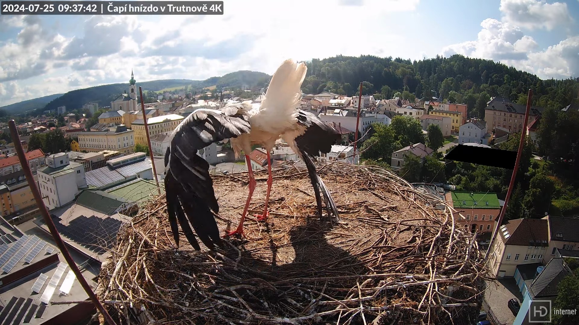 Tiešraidē no stārķa ligzdas uz alus darītavas skursteņa Trutnovā 15-8-48 screenshot