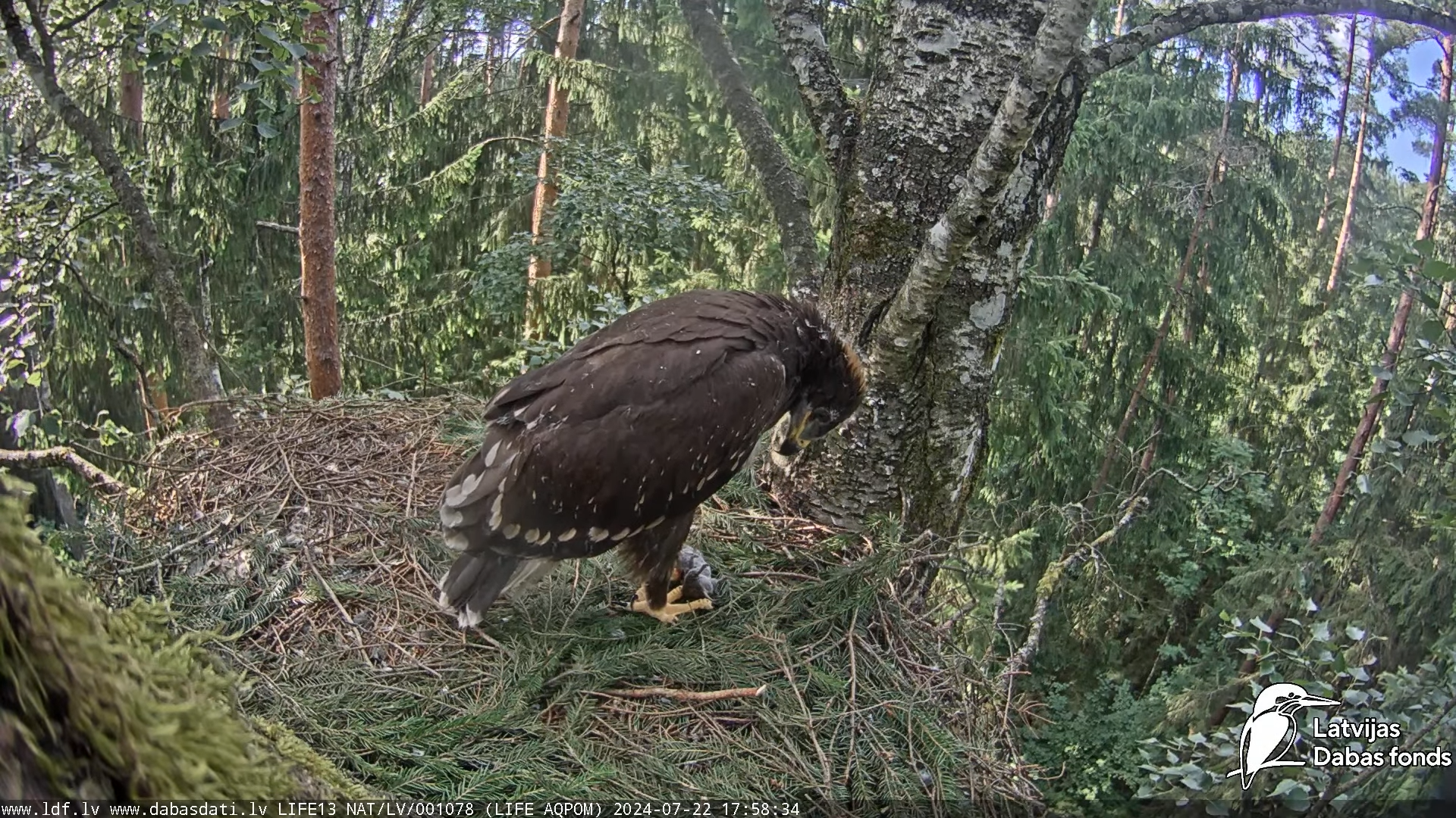 Mazais ērglis (Clanga pomarina), ligzda bērzā - LDF tiešraide 13-59-59 screenshot