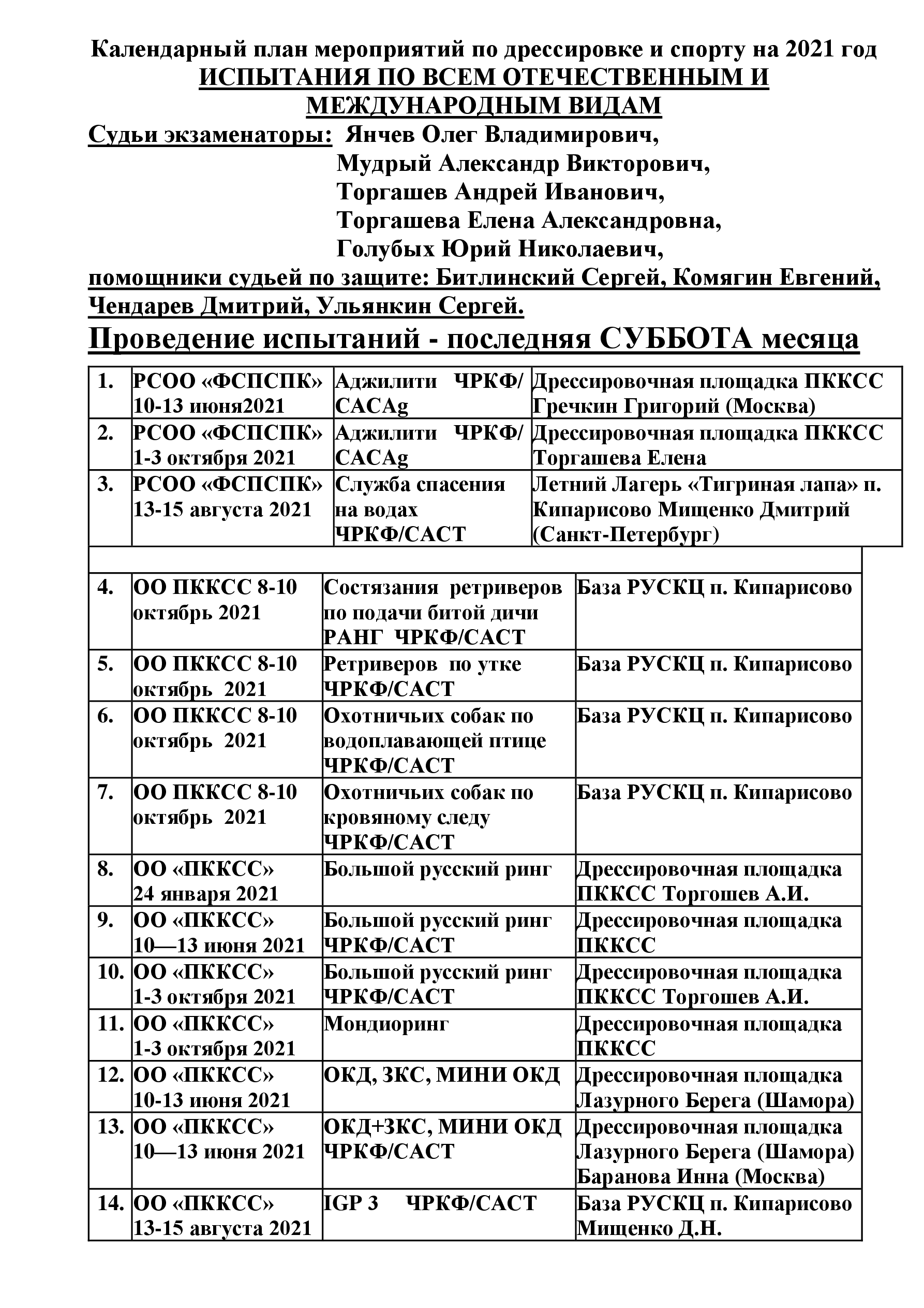 календарный план