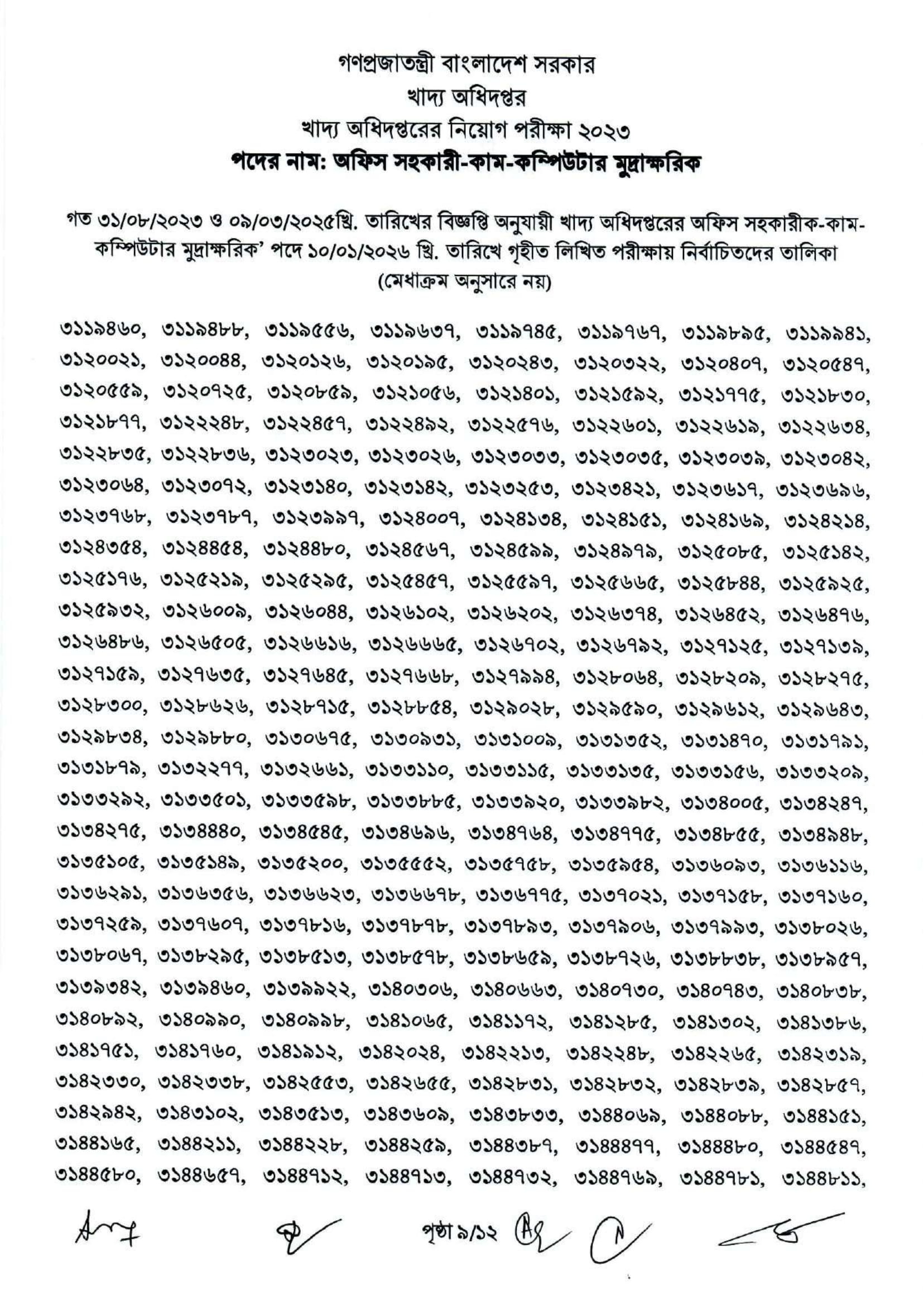 Food Office Assistant Cum Computer Typist Written Exam Result 2026 PDF 11