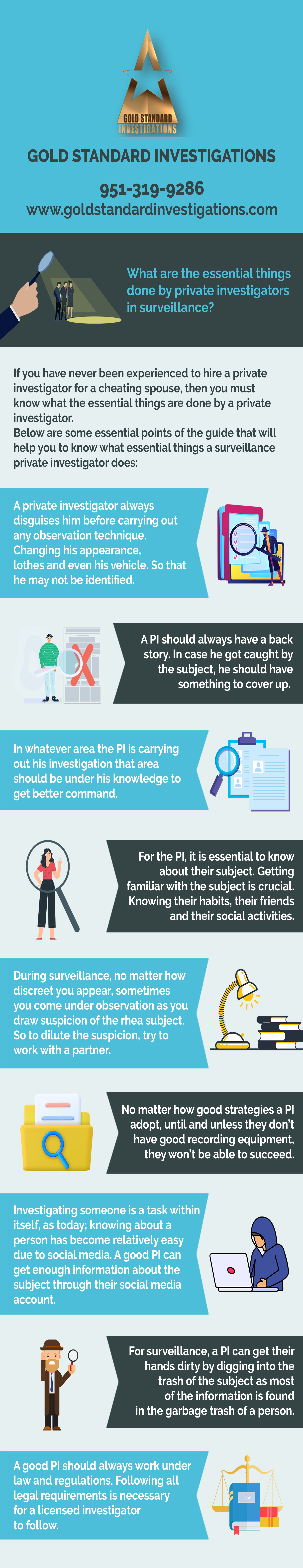 What are the essential things done by private investigators in surveillance?