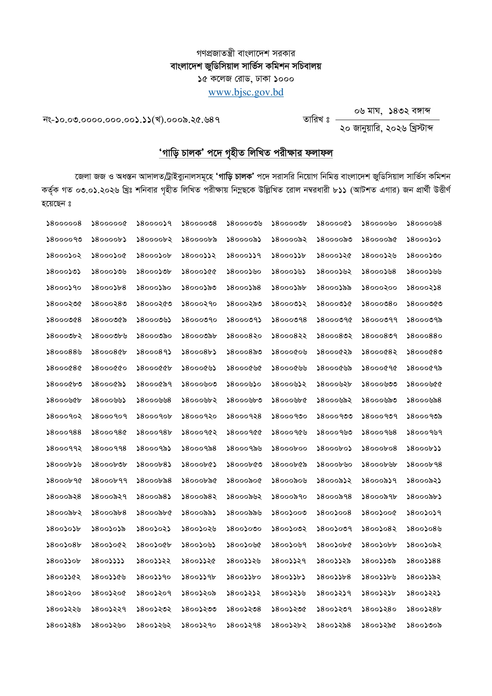 BJSC Driver Exam Result 2026 PDF 1