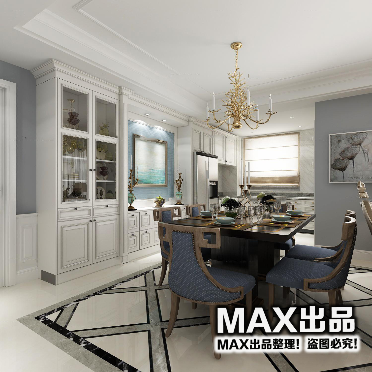 欧式客厅餐厅3D模型ID:382886-3