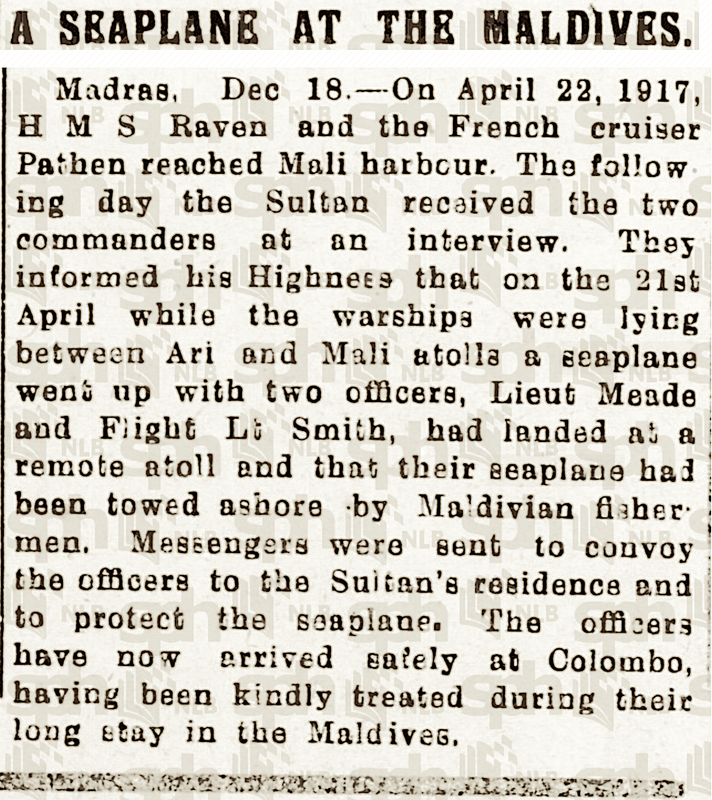 12-31-1918, Maldives Visit, Singapore Free Press and Mercantile Advertiser