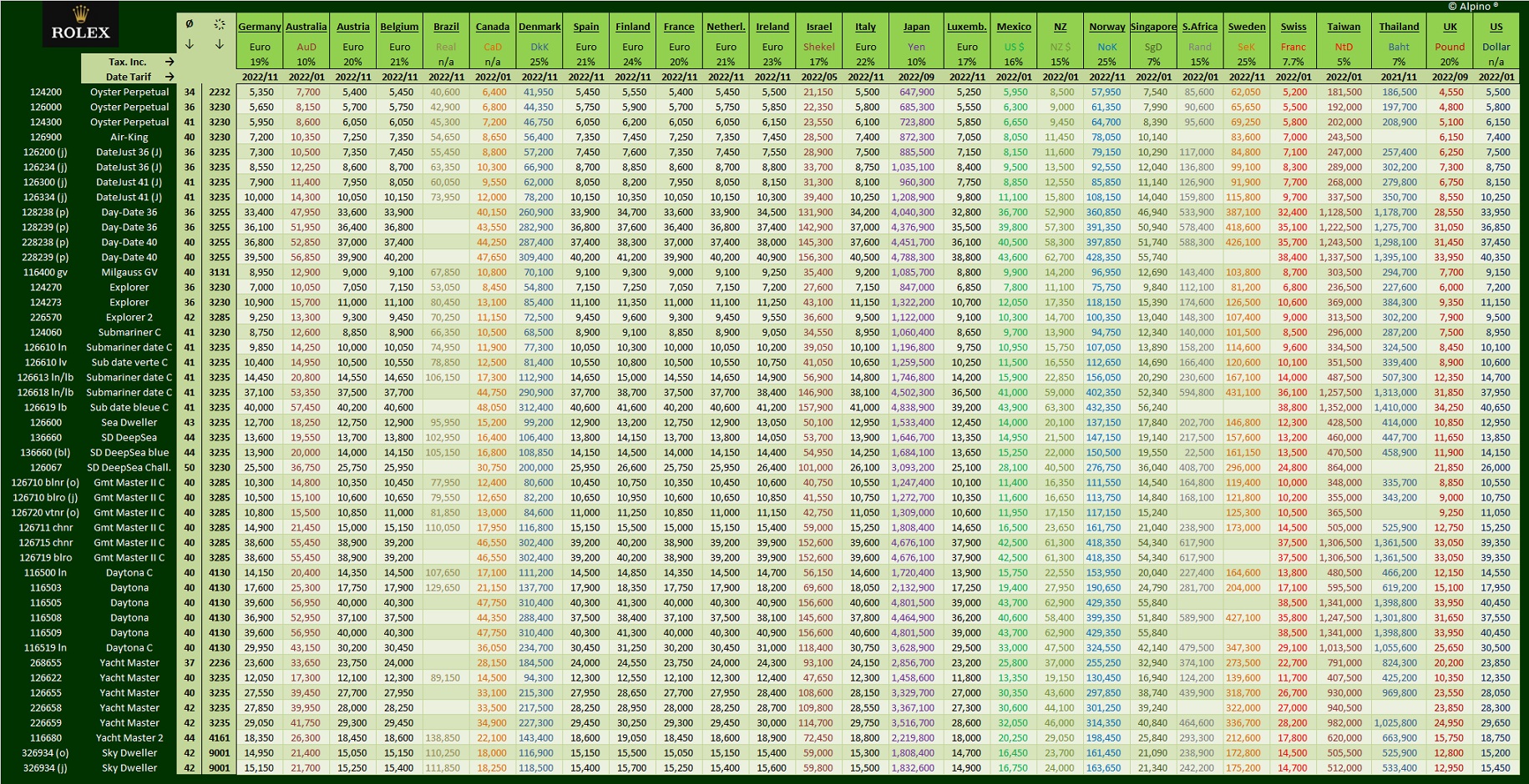 Rolex prices November 2022