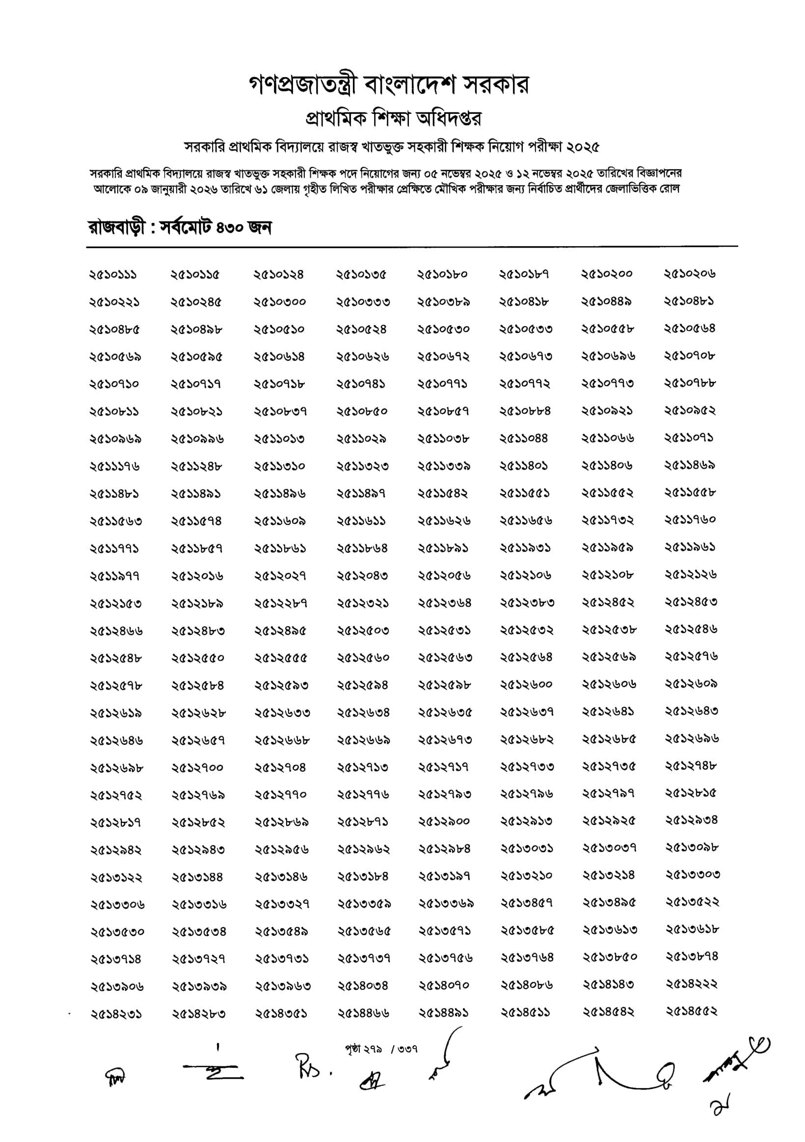 Primary MCQ Exam Result 2026 PDF 281