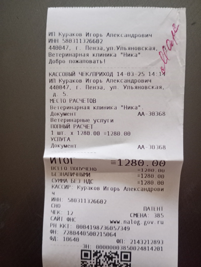 марс чек 14.03.2025 ника 1 280,00
