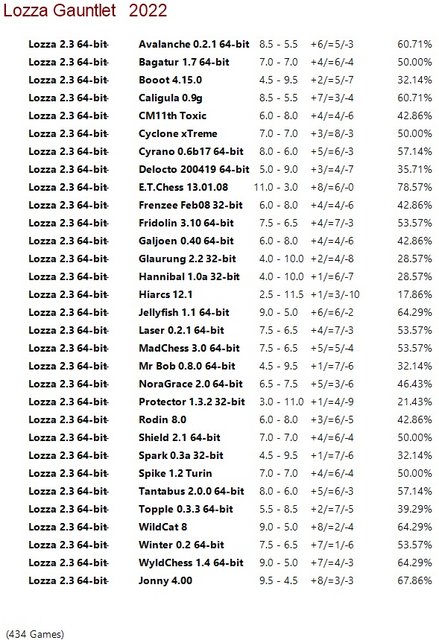 Lozza 2.3 64-bit Gauntlet