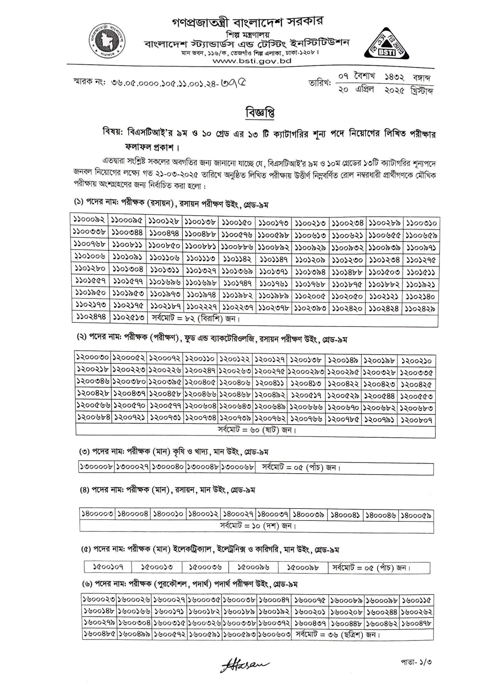BSTI Written Exam Result 2025 PDF-1