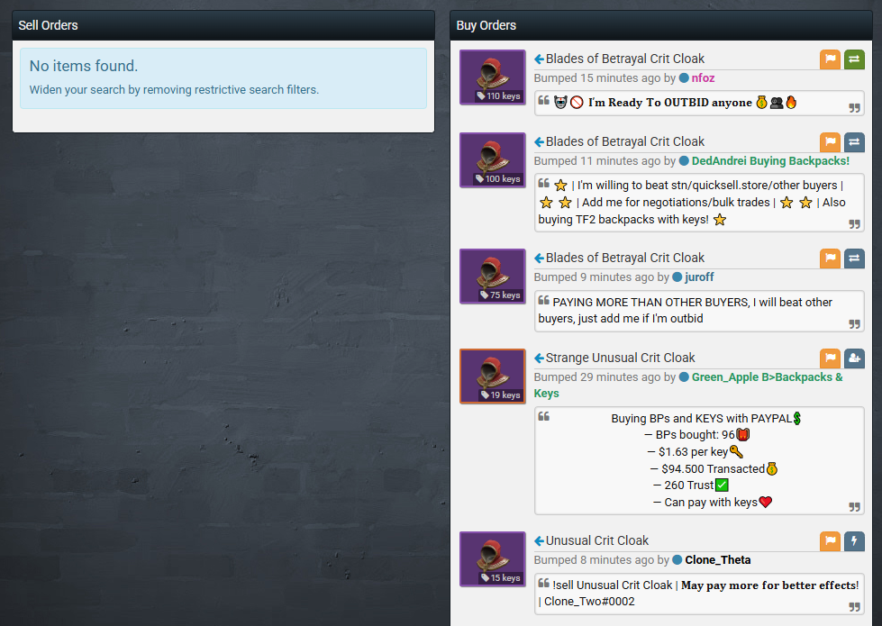 Blades of Betrayal Crit Cloak - seller and buyer