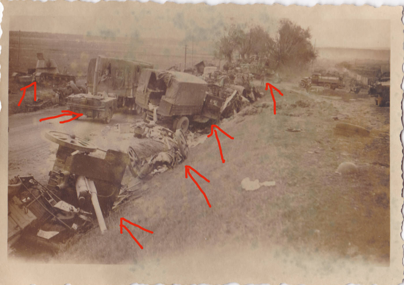 russ LKW Kolonne mit Geschützen und Feldküche to