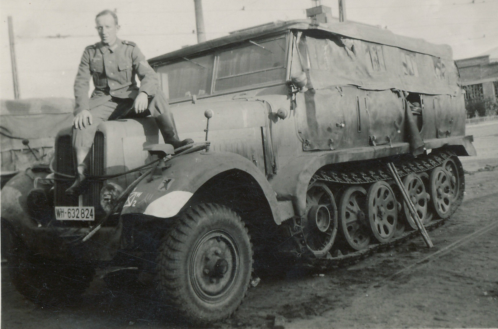 Foto 2.Wk Soldat Halbketten Fahrzeug Sonder-Kfz Panzer Tank Kennung Bär1