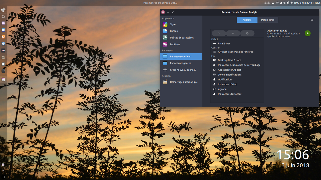 budgie_paramètres_ordre_applets