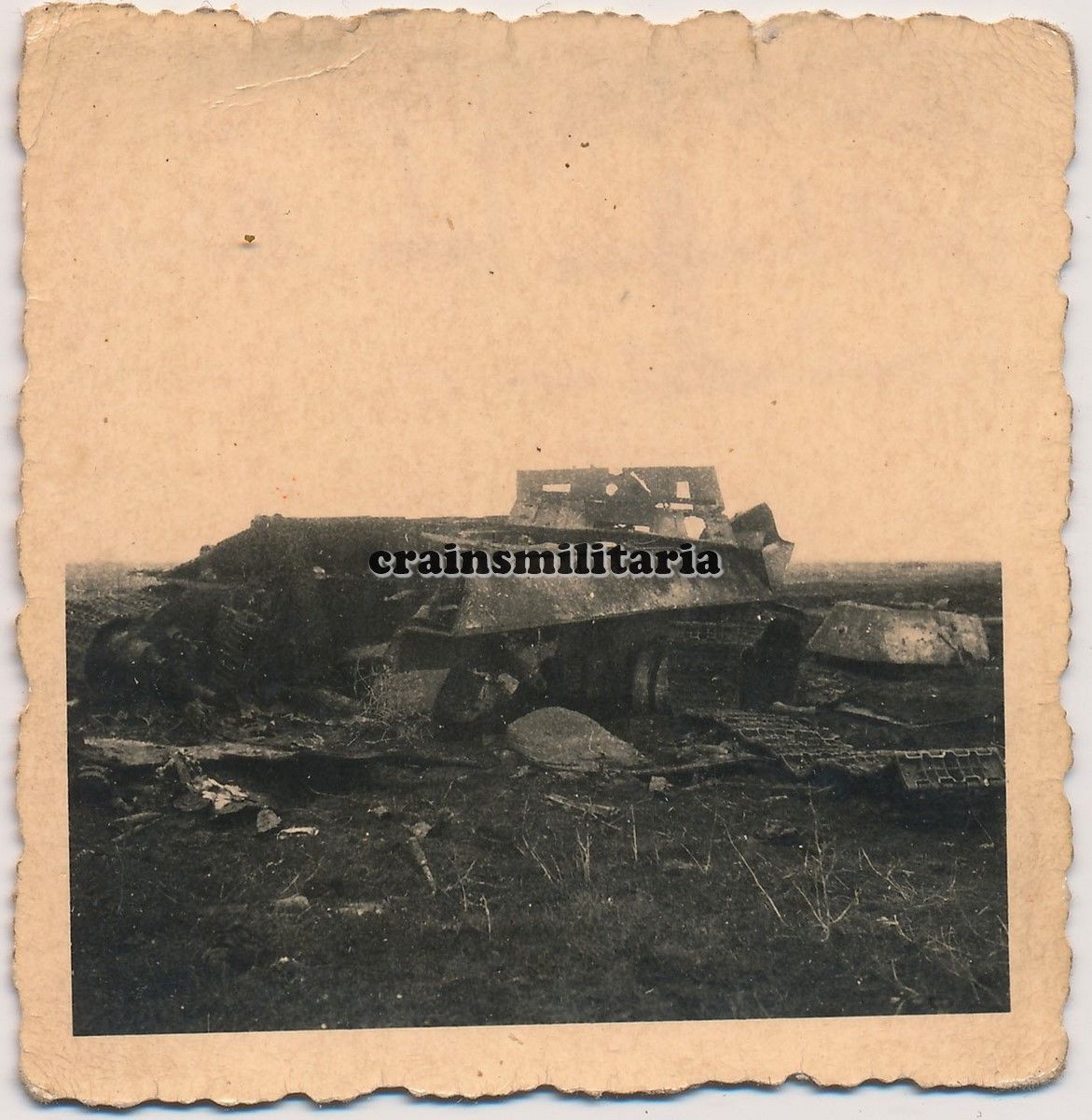 Orig. Foto zerstörte T-34 Panzer Tank b. Kampf 7.Pz.Div. in Russ
