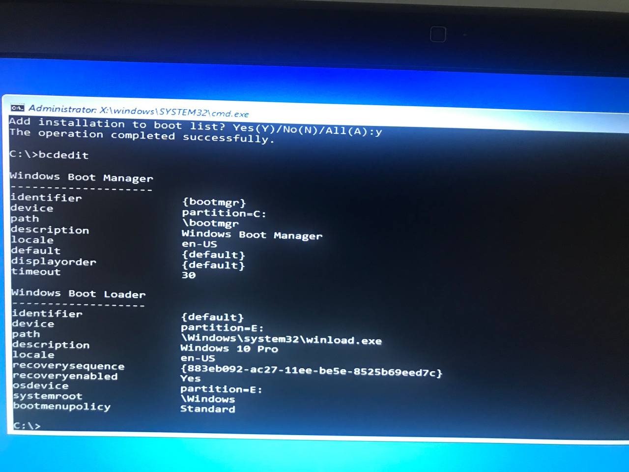 bcdedit