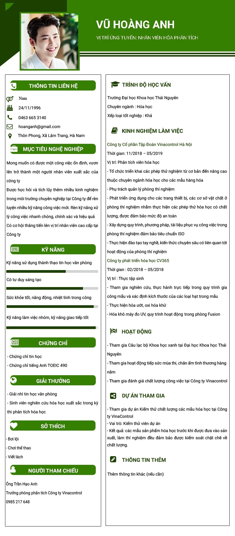 bản cv xin việc hoàn chỉnh