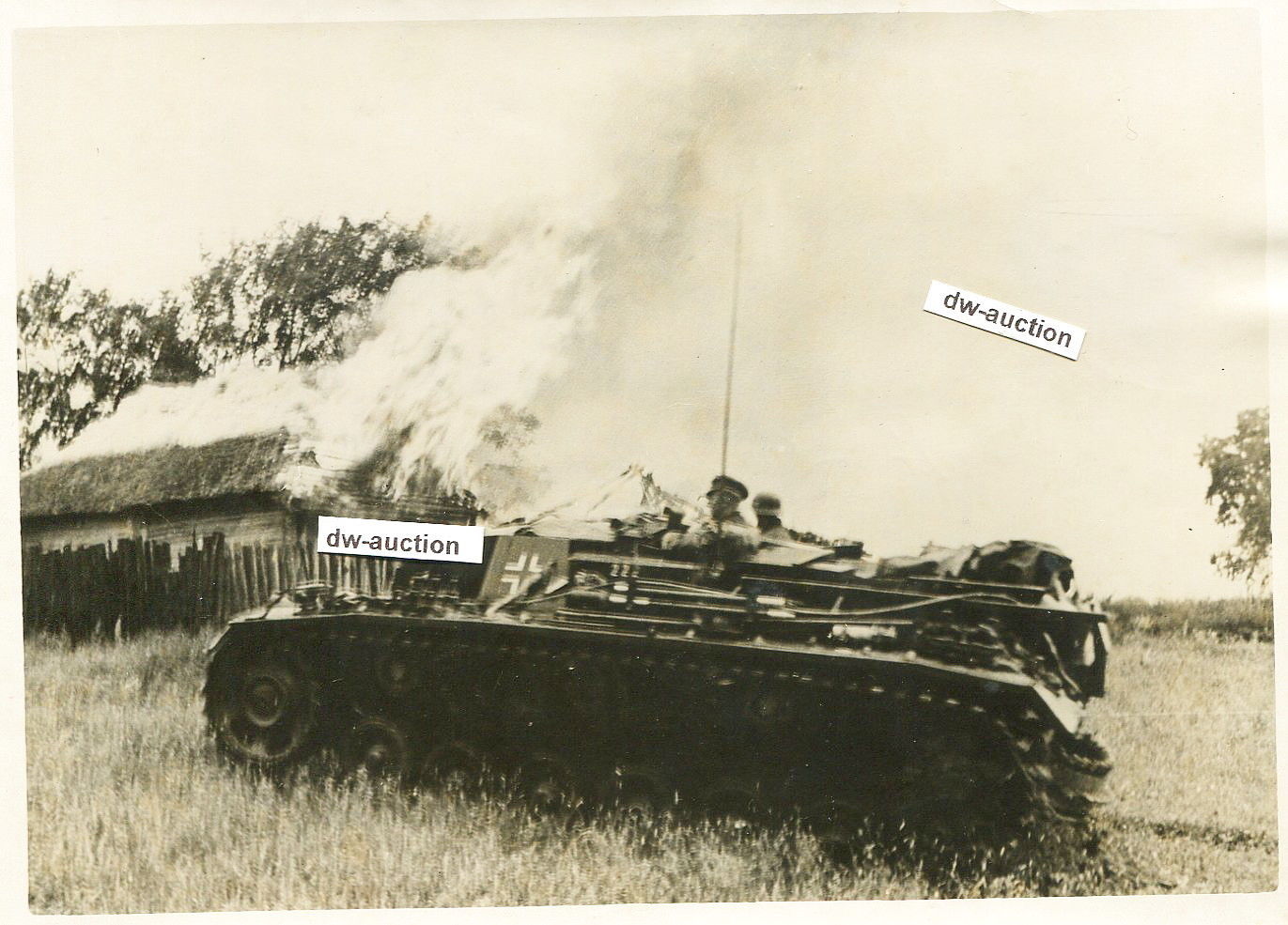 Sturmgeschütz in brennendem Dorf