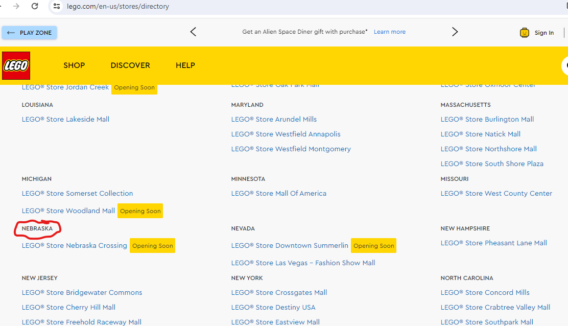 LEGO store coming soon Omaha