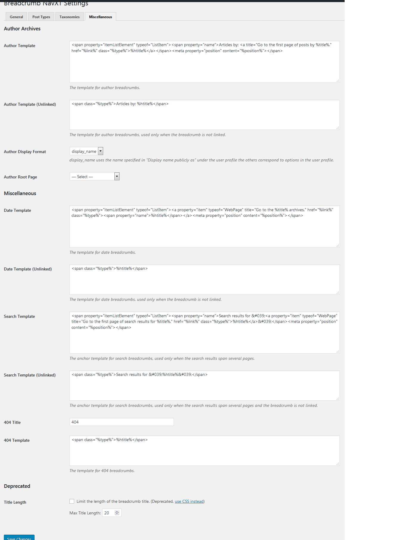 Breadcrumb NaXT Miscellaneous settings