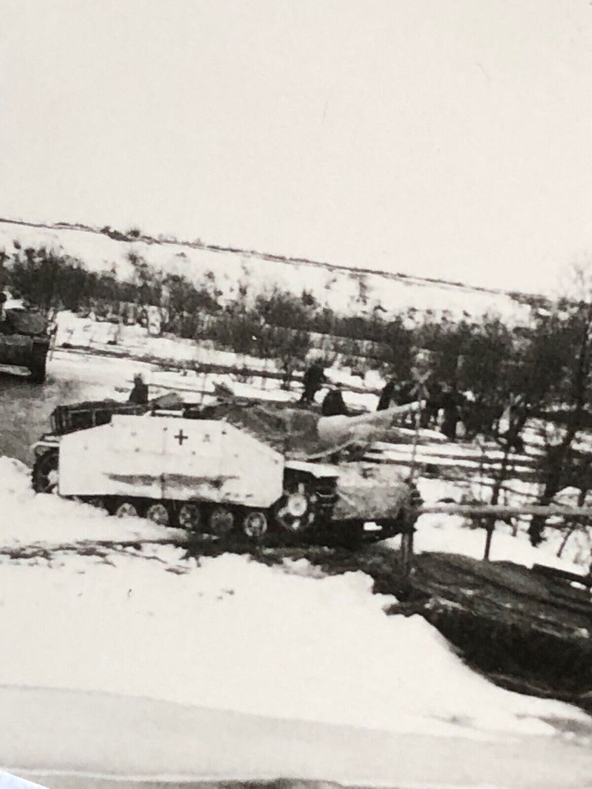 Altes Foto-Sturmgeschütz-Langrohr-Seitenschürzen-Camo-Schwimmwagen-Brücke-