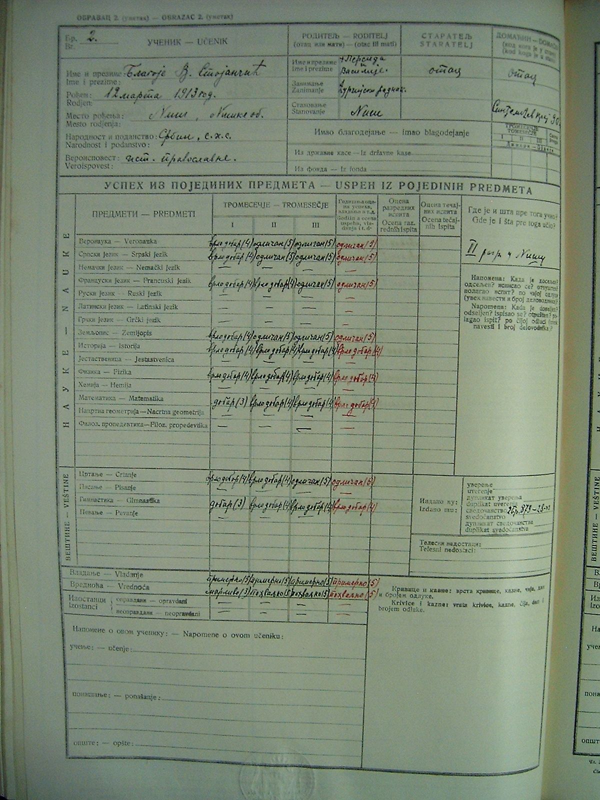 Blagoje Stojancic Upisnice Niske gimnazije