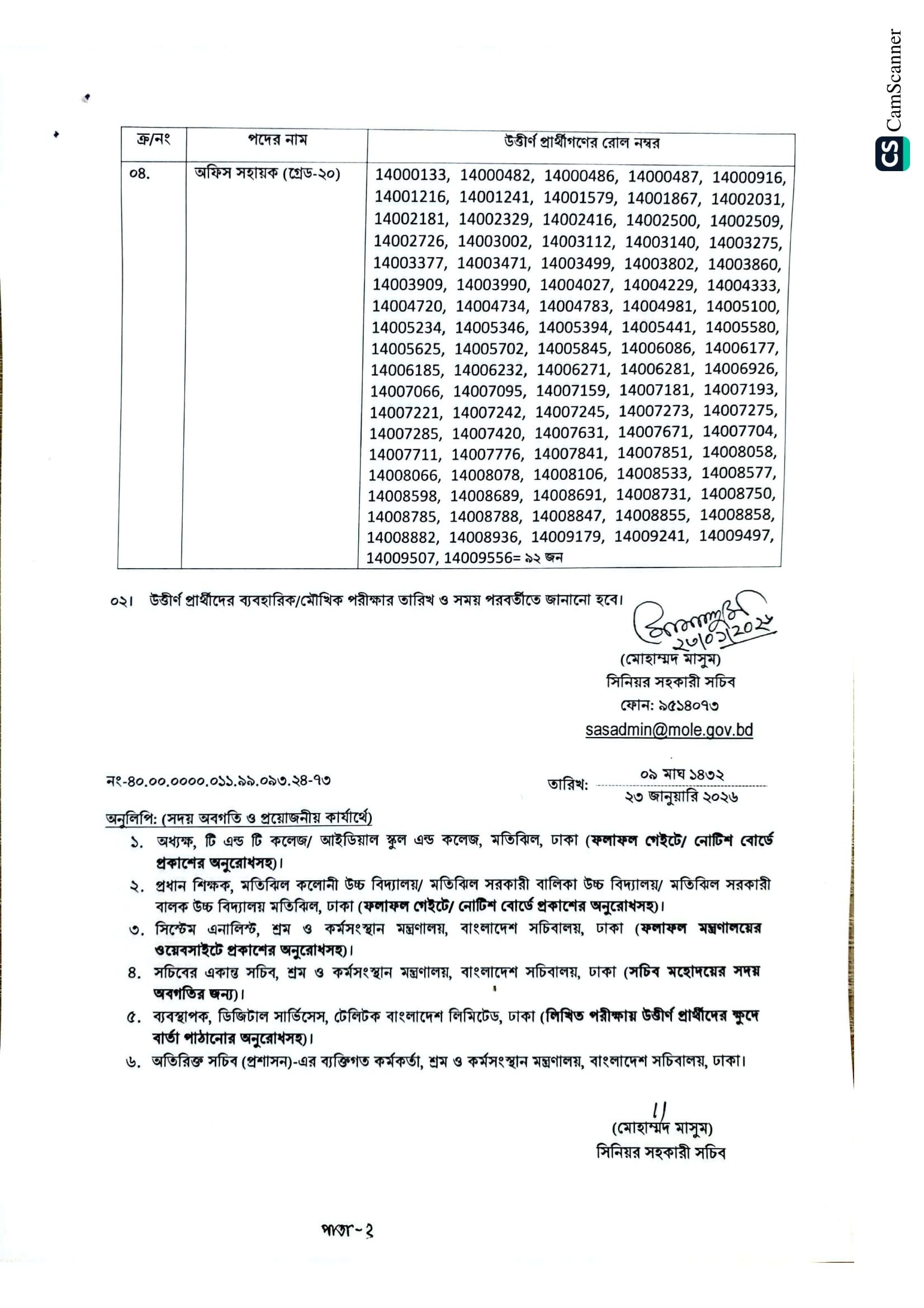 MOLE Exam Result 2026 PDF 2