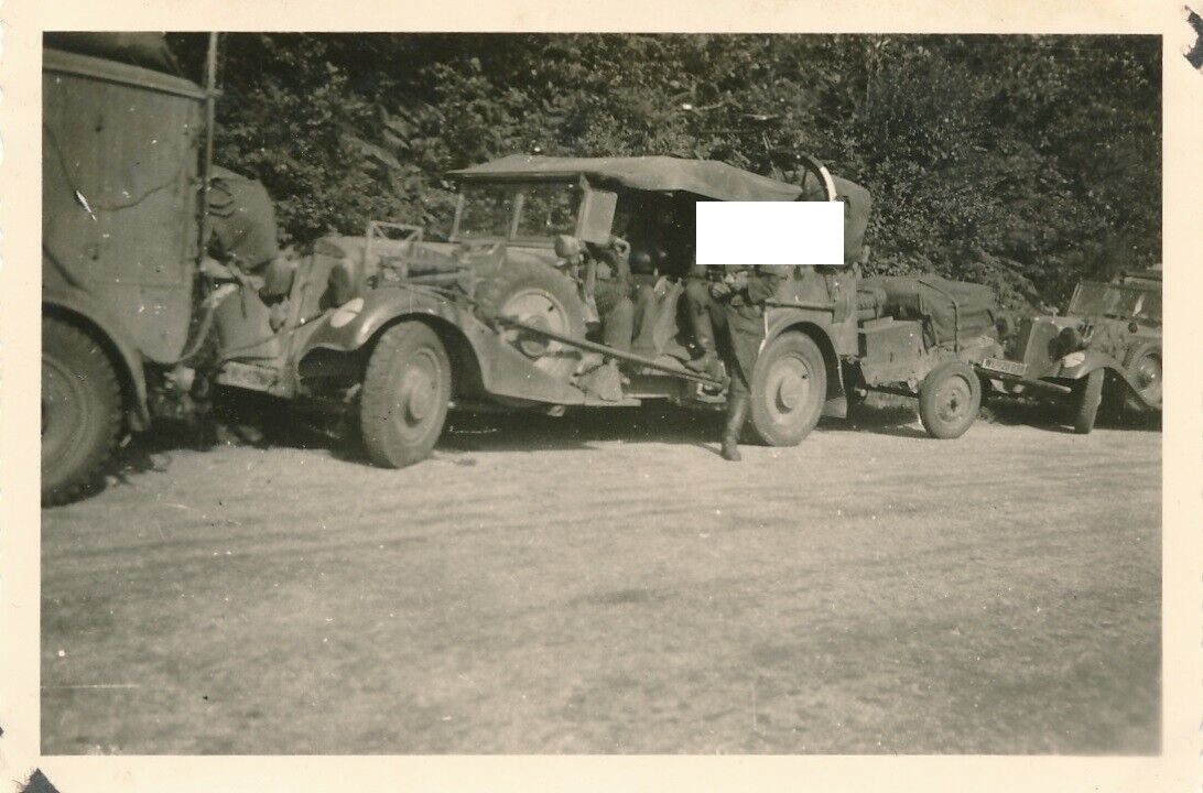 Frankreich Vormarsch deutsch Fahrzeuge PKW Beute Anhänger WL Nummernschild WK II