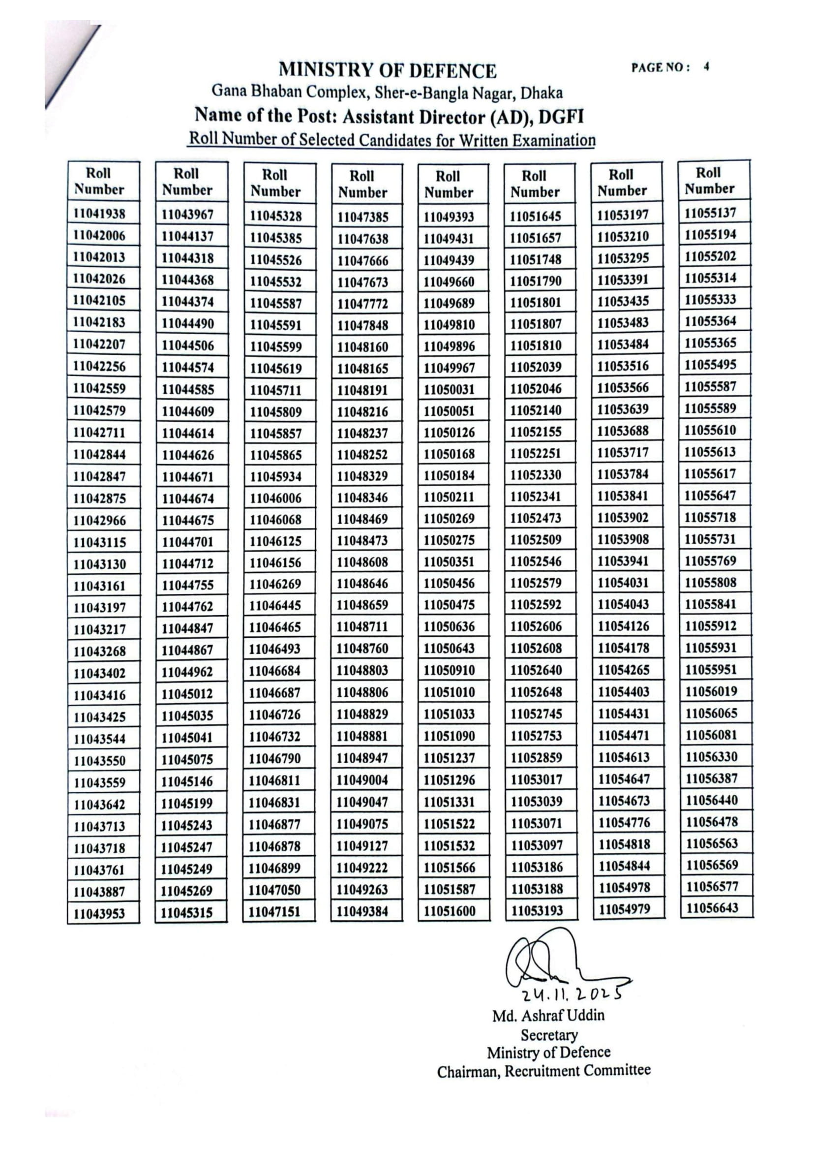DGFI Assistant Director MCQ Exam Result 2025 PDF 4