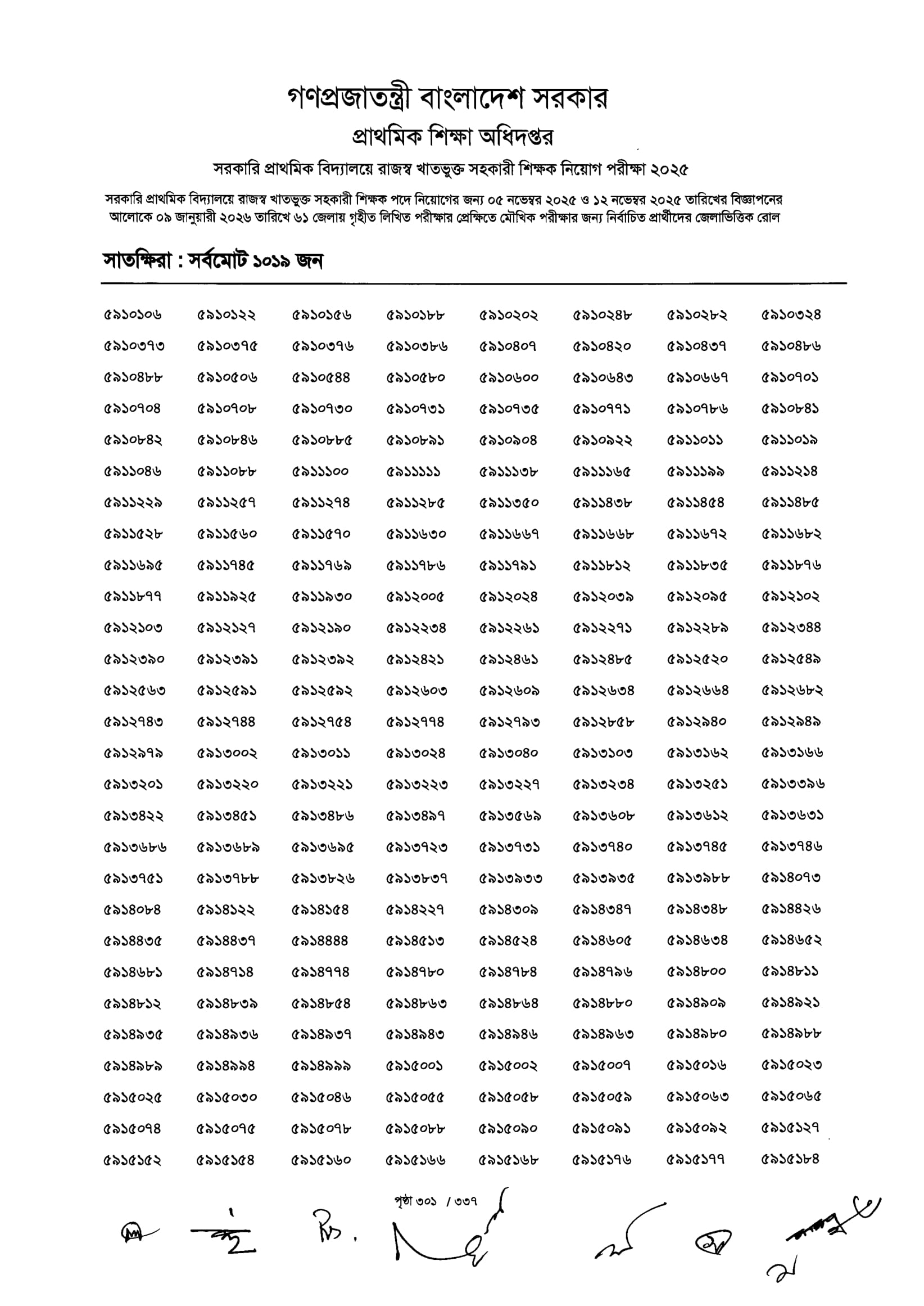 Primary MCQ Exam Result 2026 PDF 303