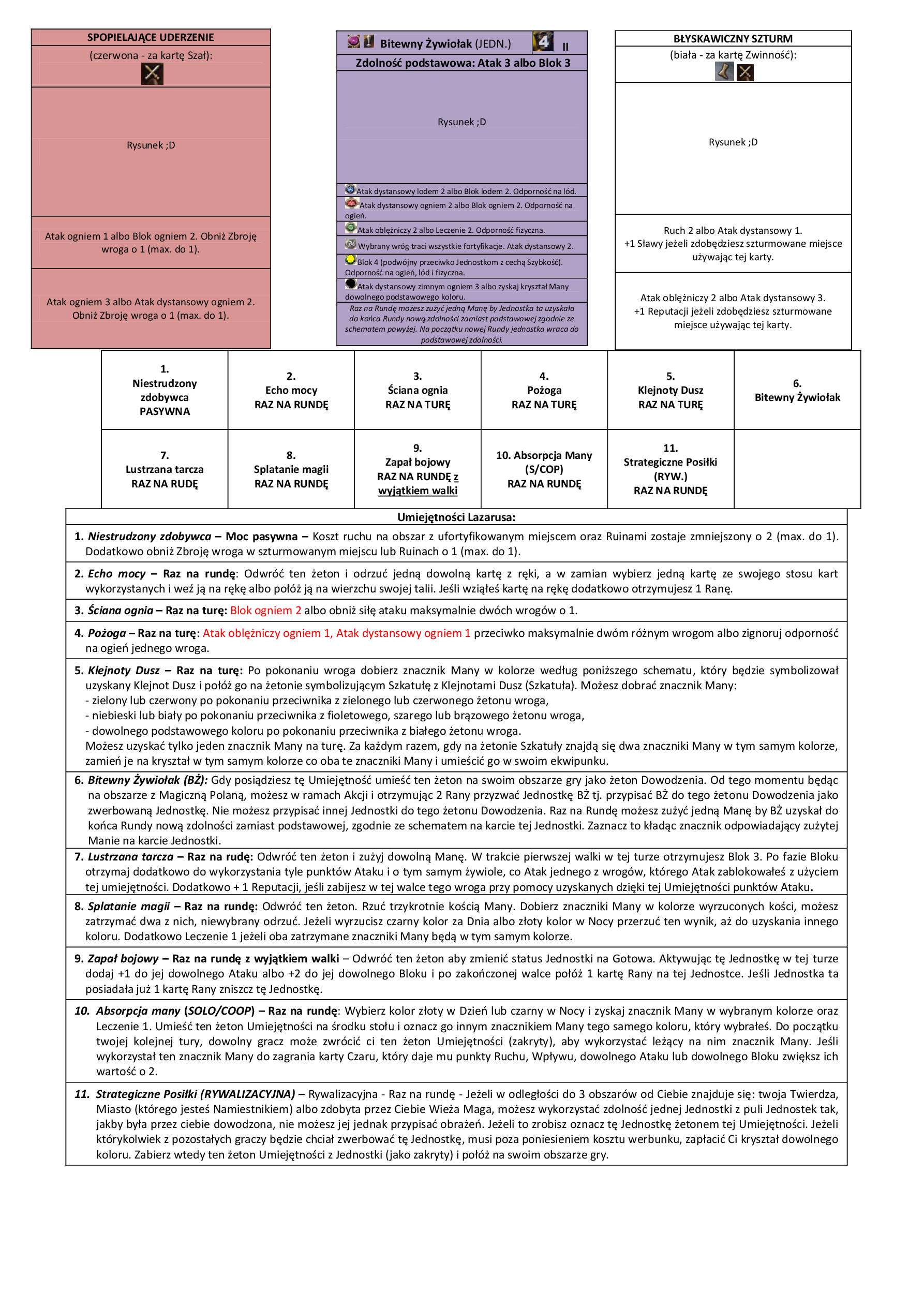 aktualne umiejętności i karty - wersja bojowa