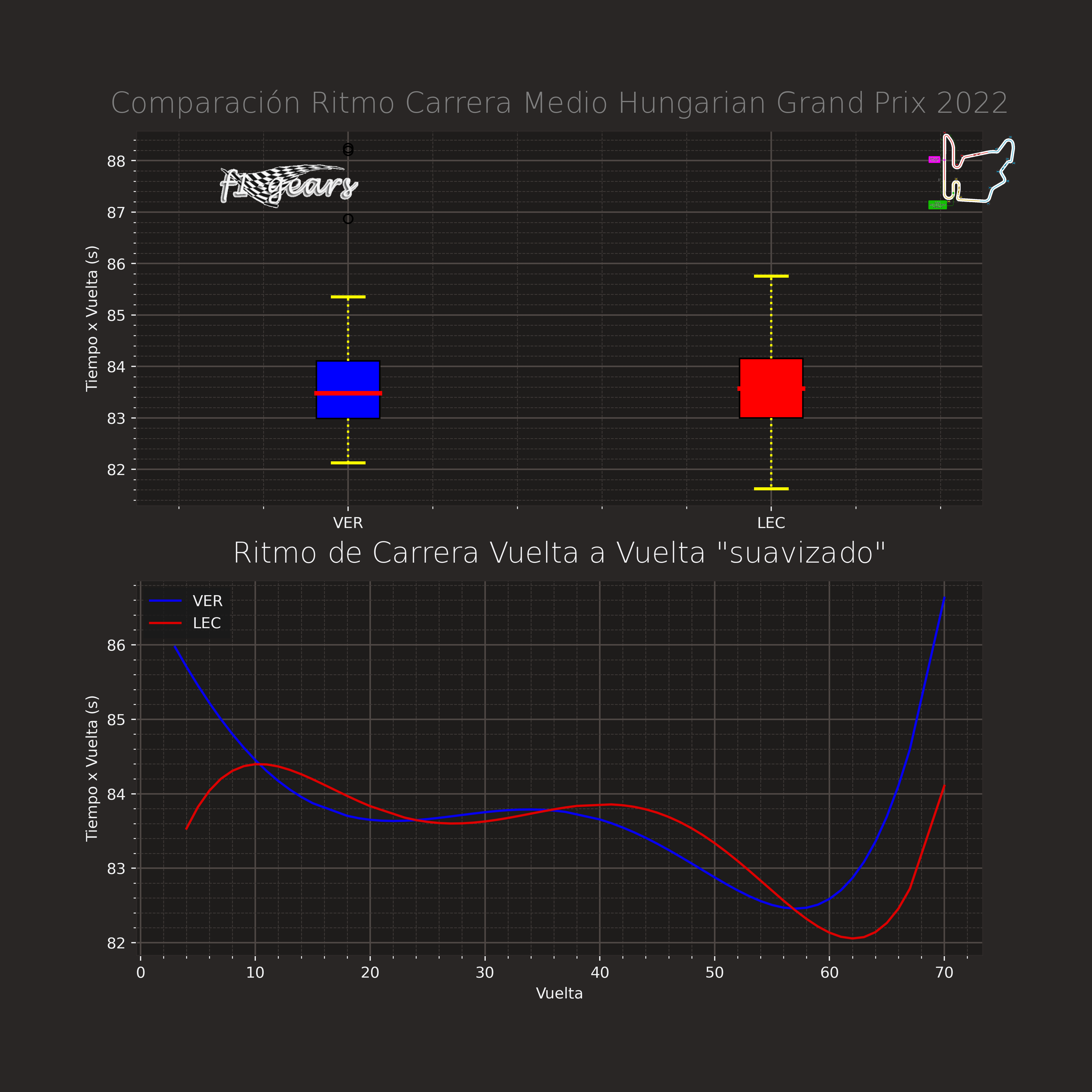 comparacion_ritmo_carrera_['VER', 'LEC']_Hungarian Grand Prix 2022