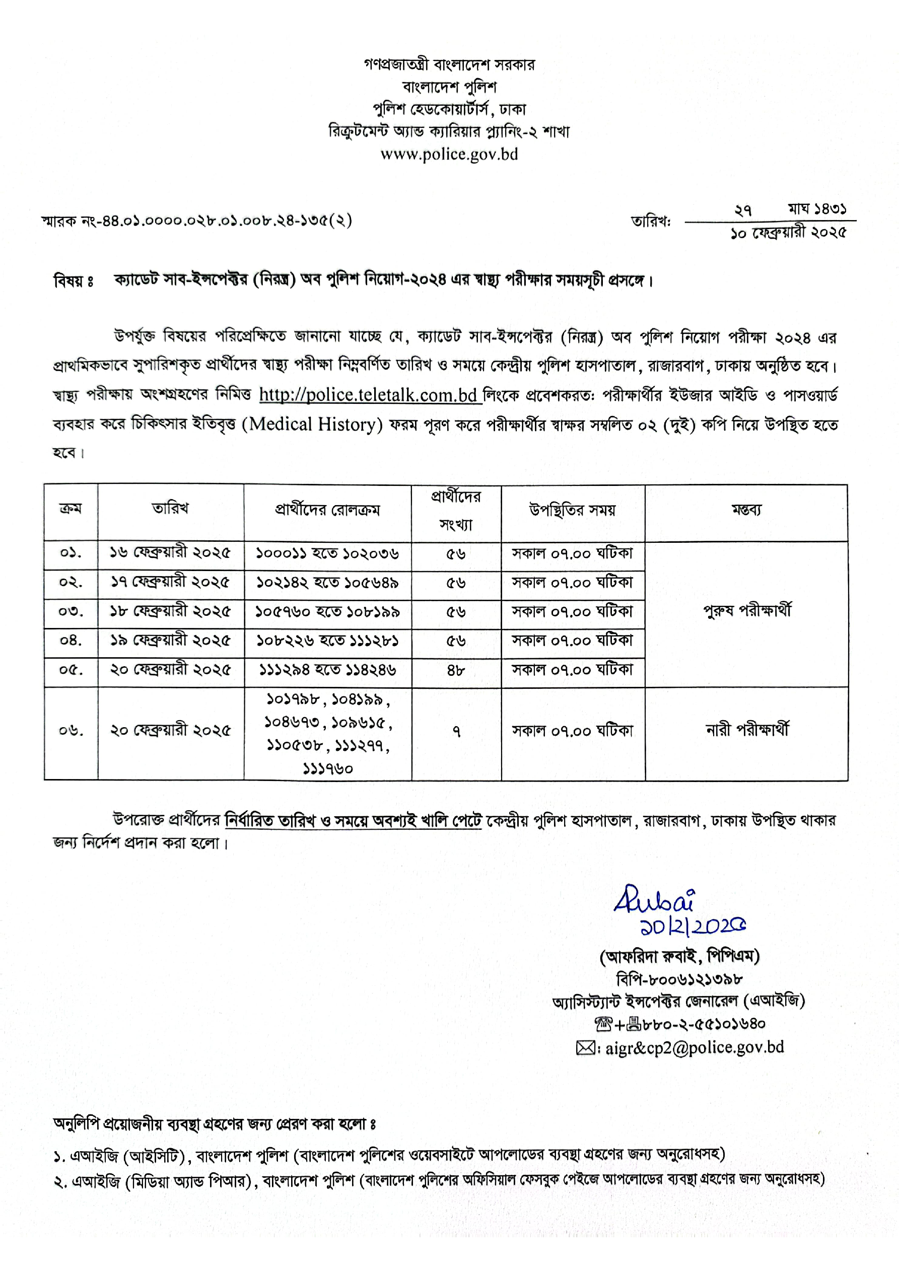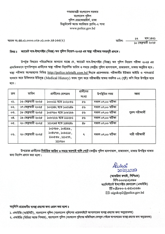 Police SI Medical Test Date 2025 PDF