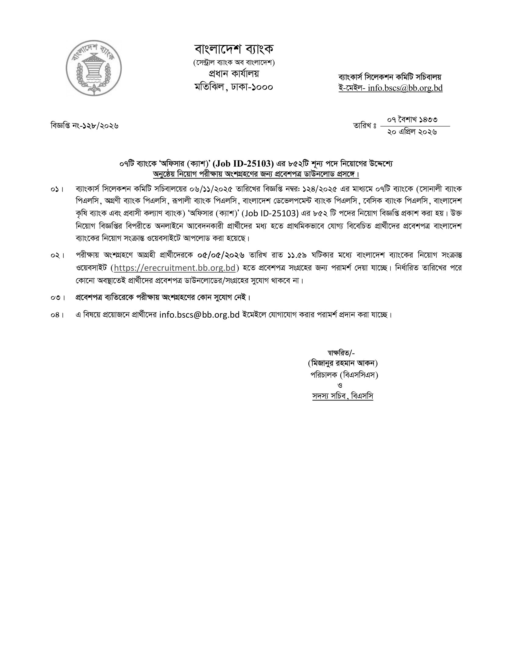Combined 7 Bank Officer (Cash) Admit Download Notice 2026 PDF 1