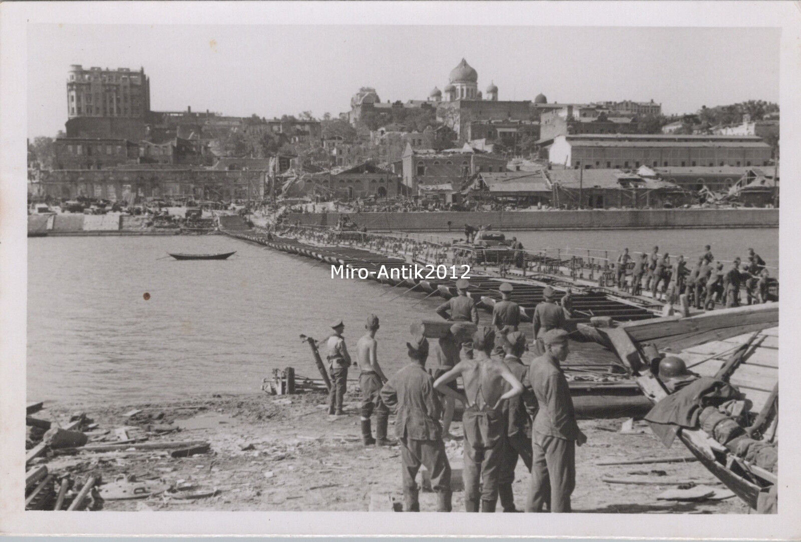 Foto, 8. B.K.76, 1941, Brücke mit Panzer, Rostow am Don, Russland 1941