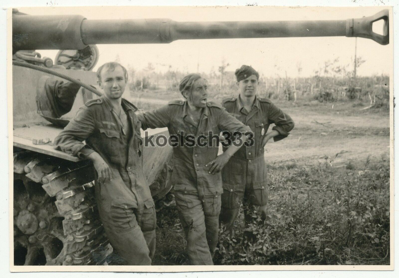 Foto Panzermänner vor einem Tiger Panzer an der Ostfront in Russland Pz.Kpfw. VI