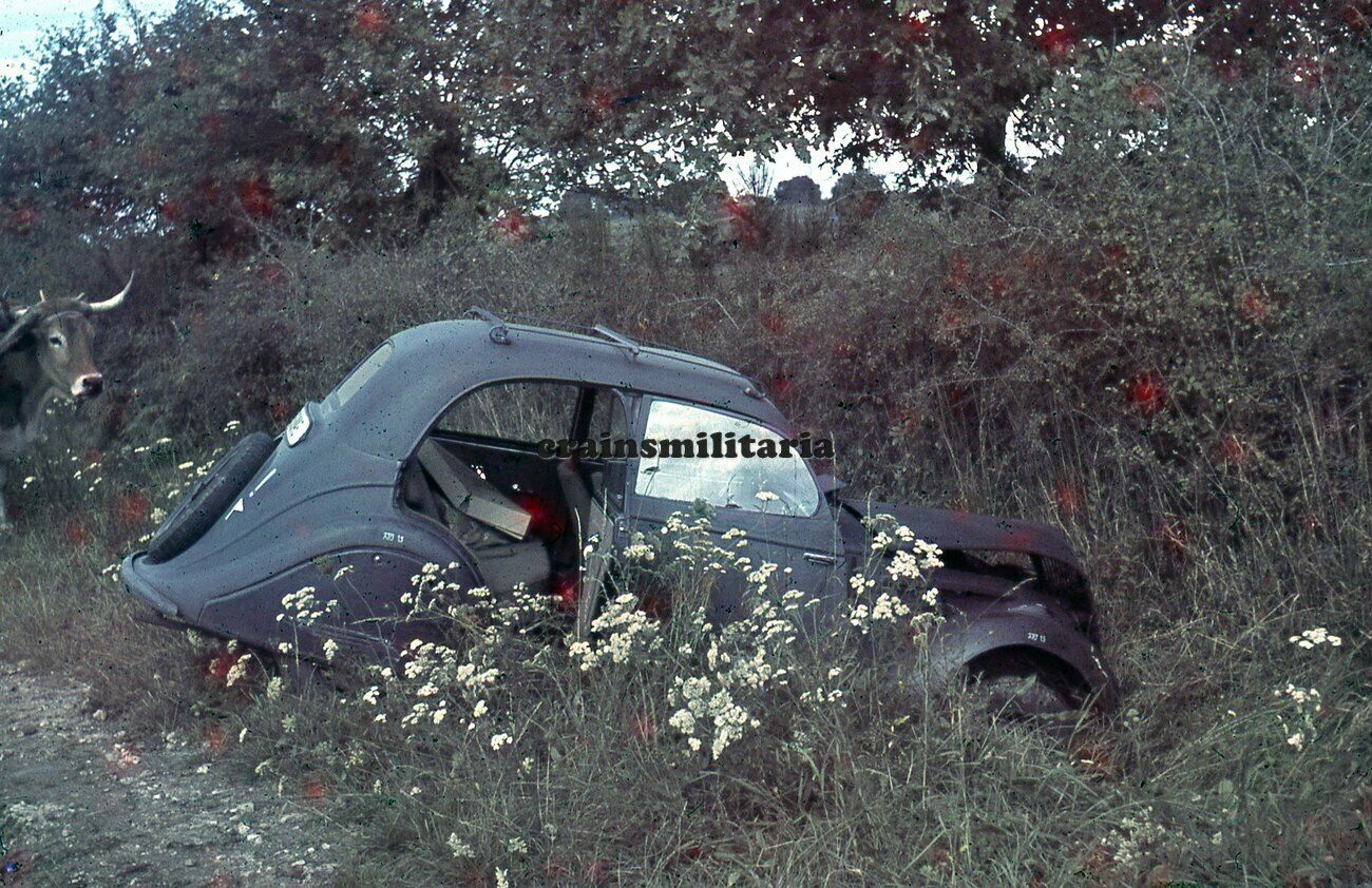 Orig. FARB Dia Foto Pkw Unfall bei PARTHENAY Poitiers Deux-Sèvres Frankreich