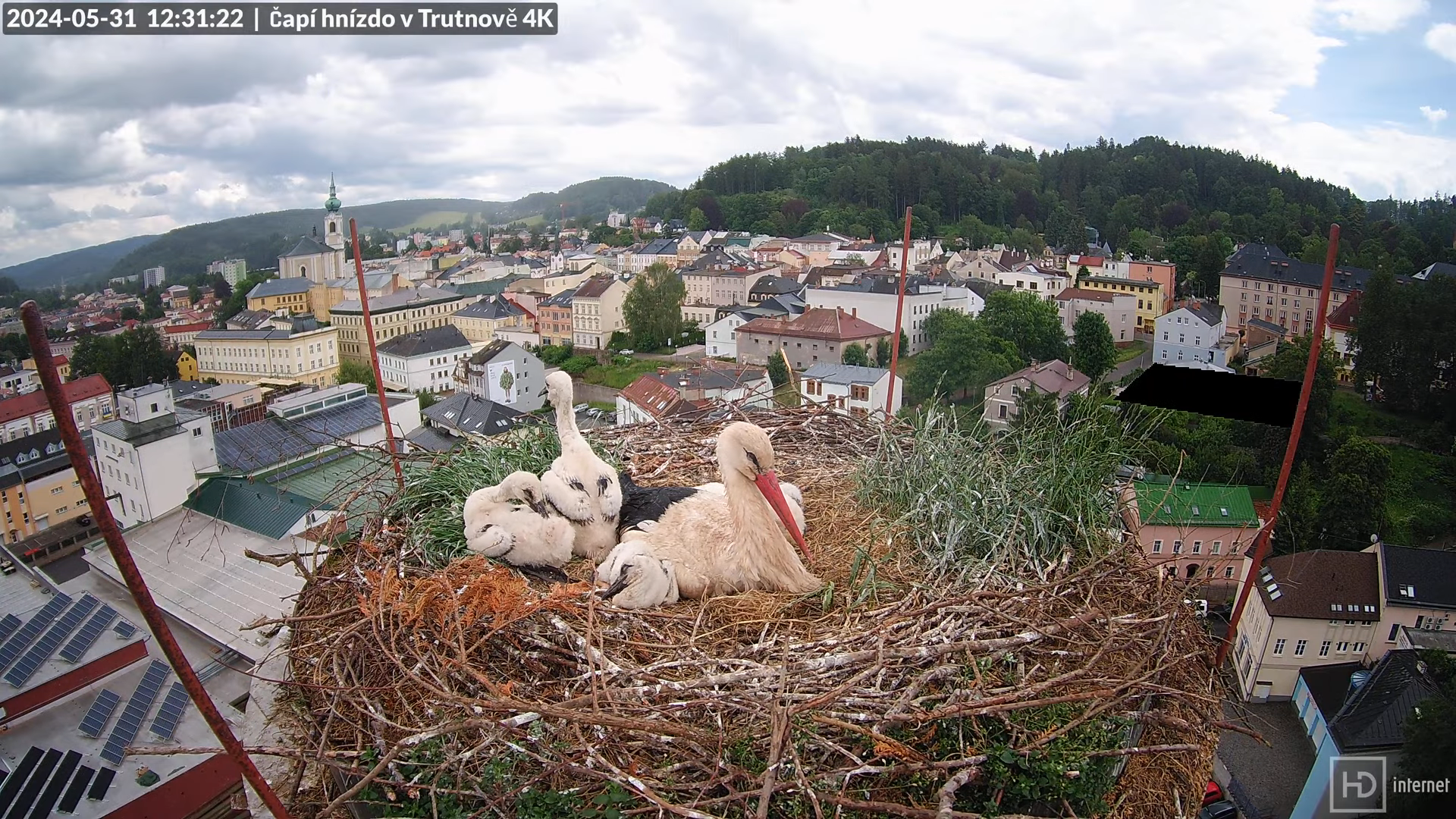 Tiešraidē no stārķa ligzdas uz alus darītavas skursteņa Trutnovā 10-39-43 screenshot