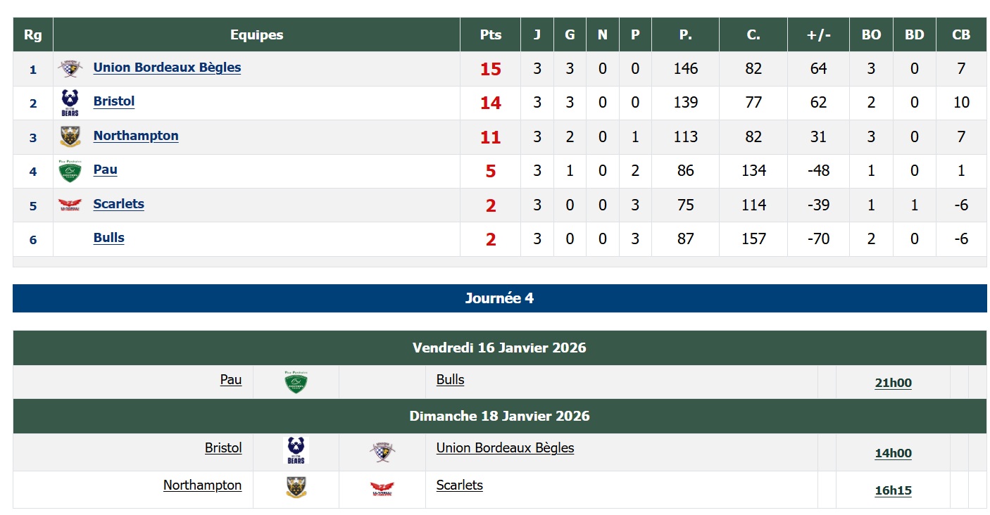 apres la 3ème j de champions cup