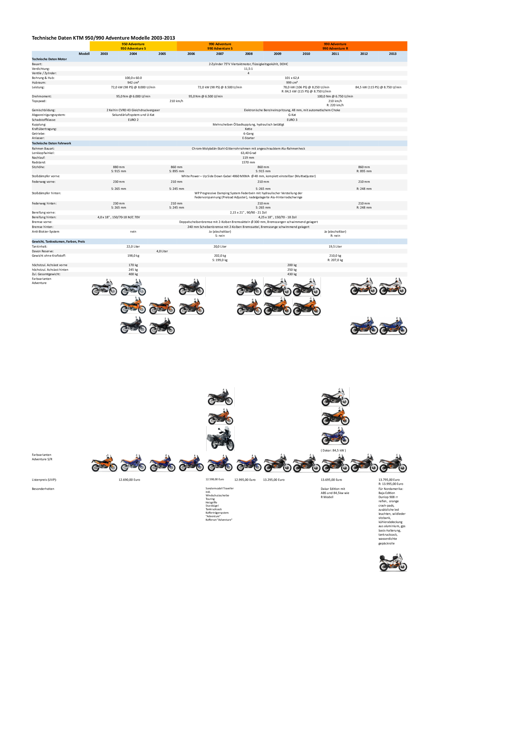 KTM techn Daten 2003-2013
