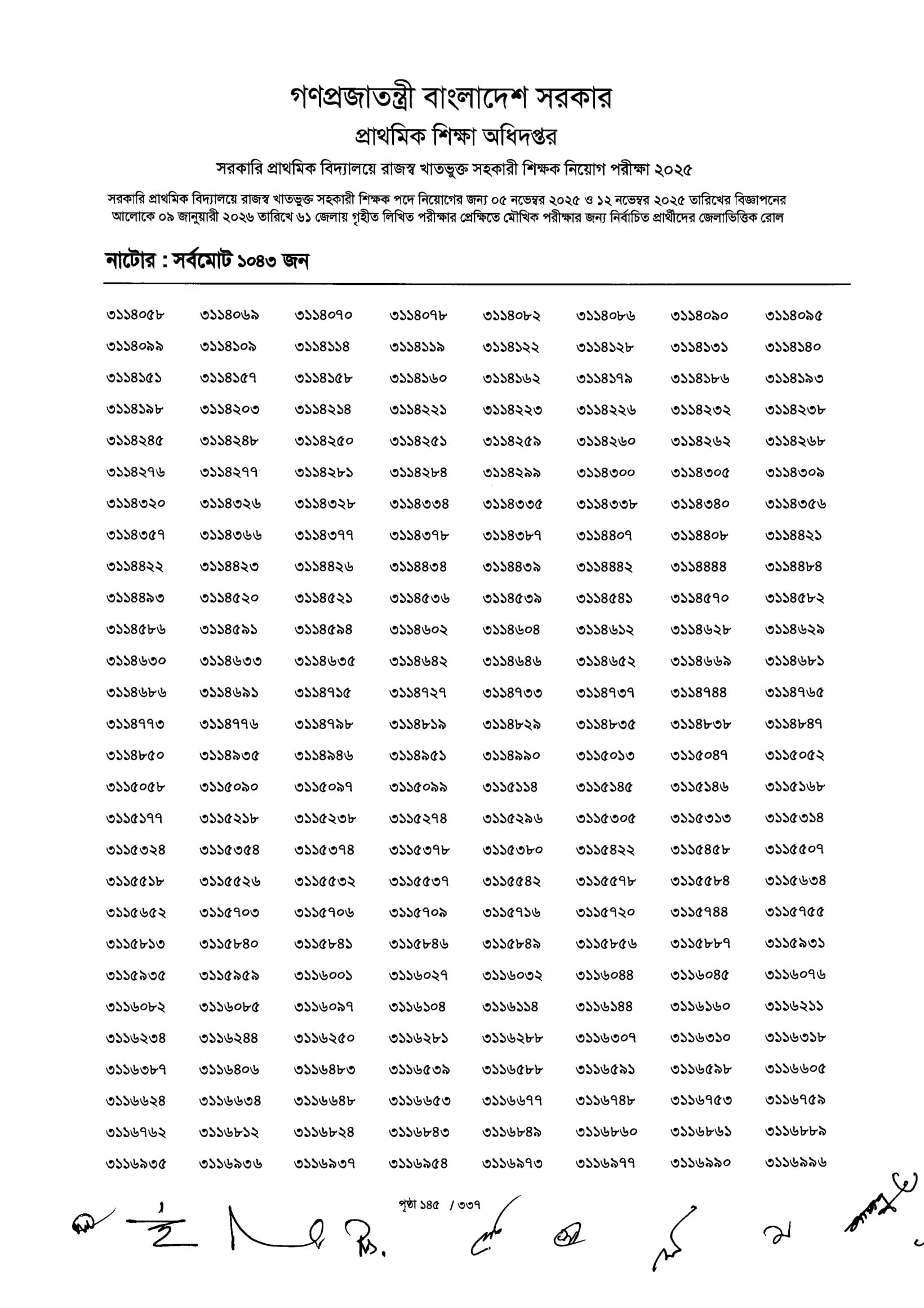 Primary MCQ Exam Result 2026 PDF 147